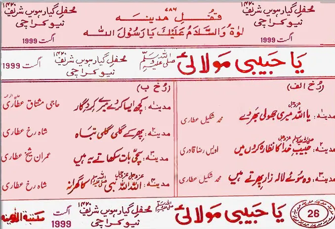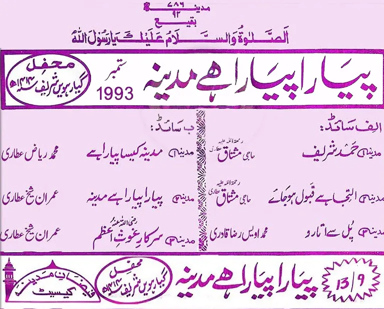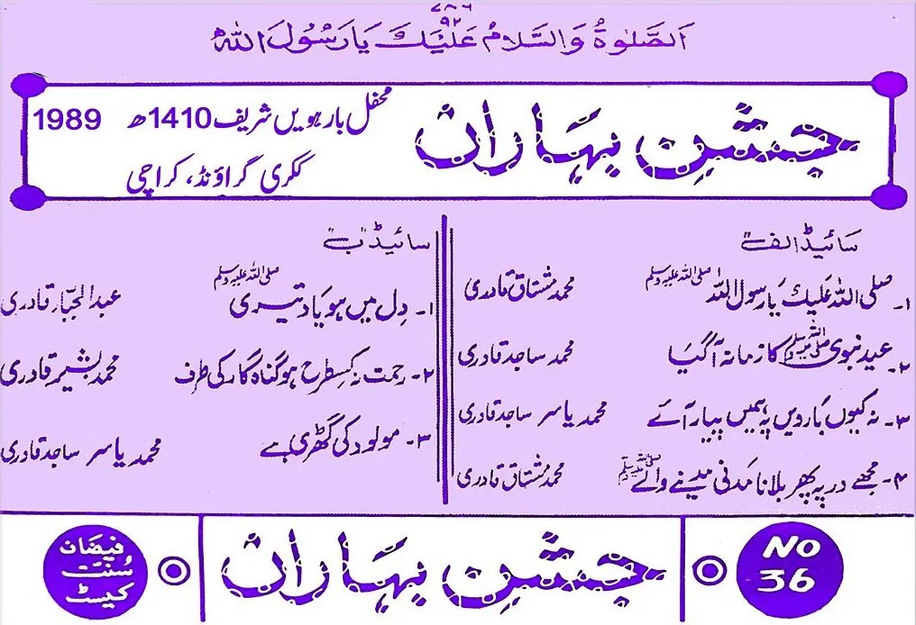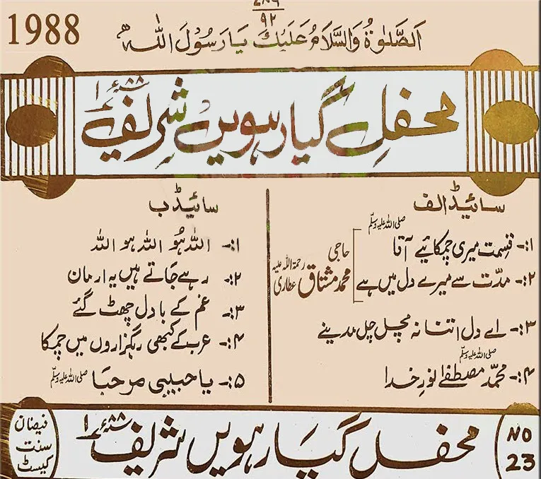 Mehfil e Giarwen Shareef - noor masjid ranchor line, Karachi (1989)