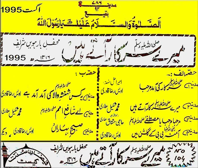 Mehfil e Barwen Shareef (August 1995) - Memon Masjid Boltan Market Karachi