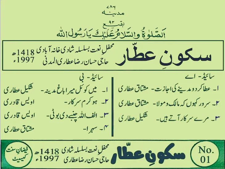 Mehfil e Naat Basilsala e Shadi, Haji Hassan Raza Attari (1997)