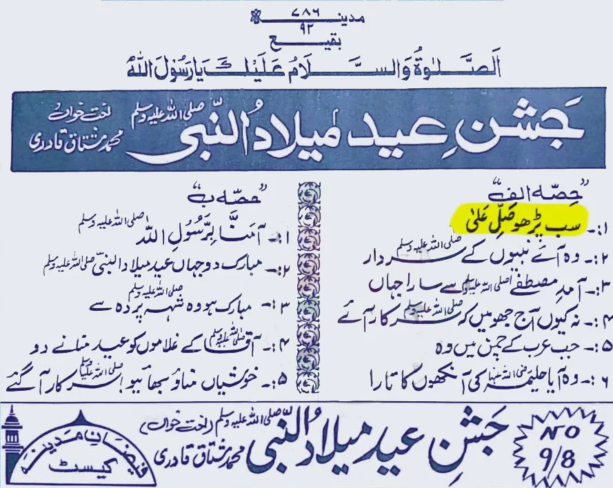 Mehfil e Faizan e Madina - Jashn e Wilad Youm e Raza - Shawwal (1421H) - (2001)